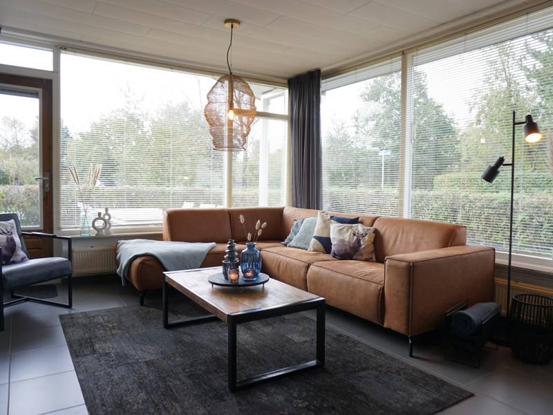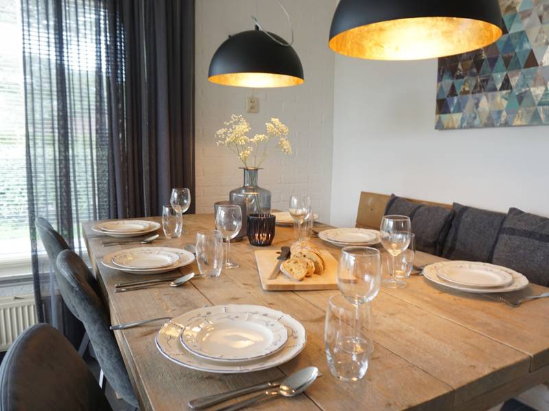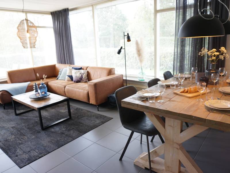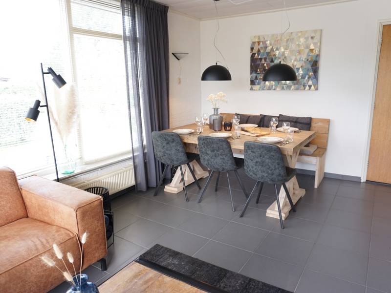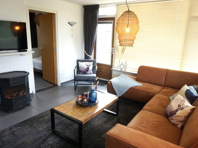 Het huisje is gelijkvloers en bestaat uit een hal, woonkamer met electrische haard, zithoek, flatscreentelevisie en 6 persoons eettafel.
