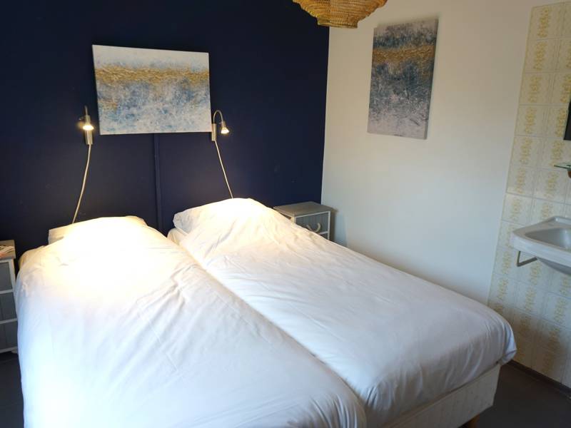 Vanuit de woonkamer kom je in een slaapkamers met 2 losse bedden. Via de hal kom je in de andere 2 slaapkamers met elk 2 losse bedden. Elke slaapkamer heeft een eigenwastafel.