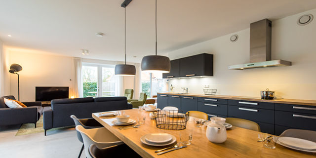 De woning beschikt over een royale woonkamer met een dubbele open keuken. Beide keukens zijn voorzien van een vaatwasser, inductiekookplaat, koffieapparaat, Nespresso-apparaat en waterkoker.