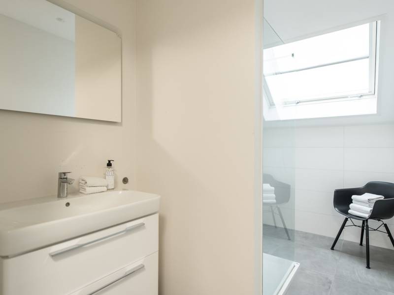 - Begane grond: ensuite badkamer in de slaapkamer, voorzien van douche, wastafel en toilet.