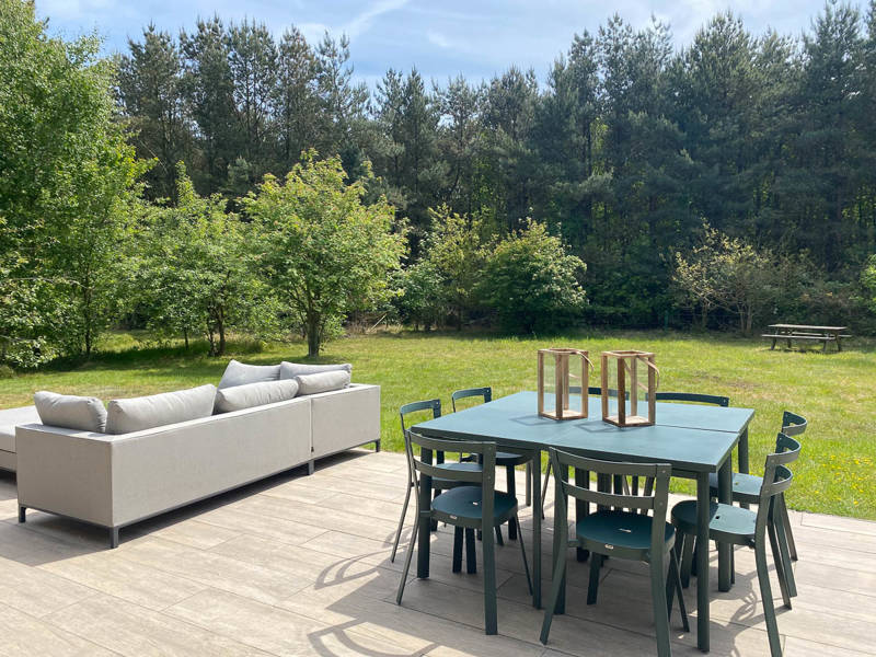 Het terras is ingericht met een grote eettafel voor 10 personen en een comfortabele loungeset. Daarnaast is er een buitendouche, waar u kunt genieten van een verfrissende douche in de buitenlucht.