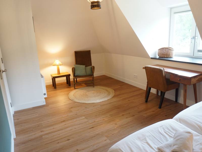 Een ruime slaapkamer met twee boxspringbedden (80x200 cm).