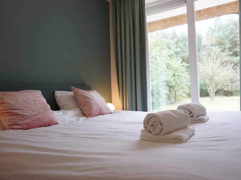 Vanuit deze slaapkamer heeft u tevens directe toegang tot het terras via de schuifdeuren.