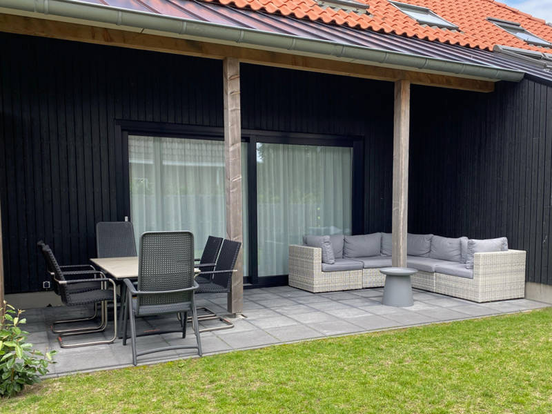 Via de woonkamer heeft u toegang tot het terras, compleet met een eettafel voor 6 personen en een comfortabele loungeset.