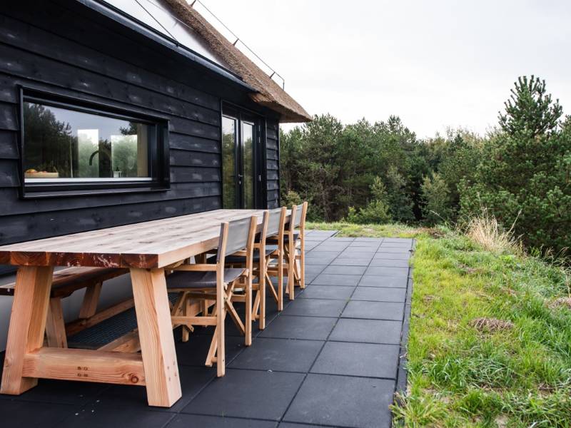 Via de woonkamer bereik je het terras aan de zijkant. Hier staat een royale picknicktafel waar je in de zomer heerlijk buiten kunt eten.