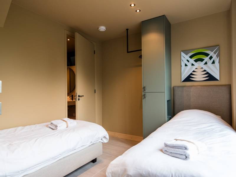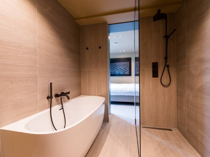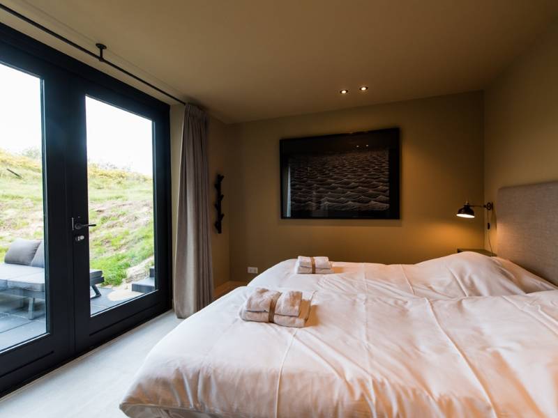 Het duinhuis telt drie comfortabele slaapkamers in het soutterrain, elk ingericht met luxe boxspringbedden van Treca de Paris. Twee stijlvolle badkamers bieden extra comfort: beide uitgerust met een inloopdouche met regendouche en handdouche. Eén van de badkamers biedt daarnaast een comfortabel ligbad, perfect voor een ontspannen moment. Op de verdieping bevindt zich een separaat toilet.