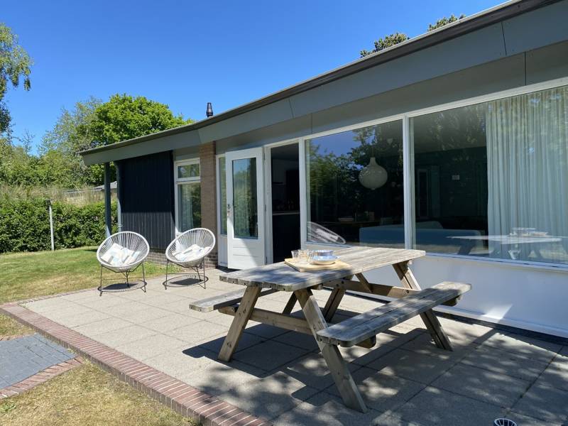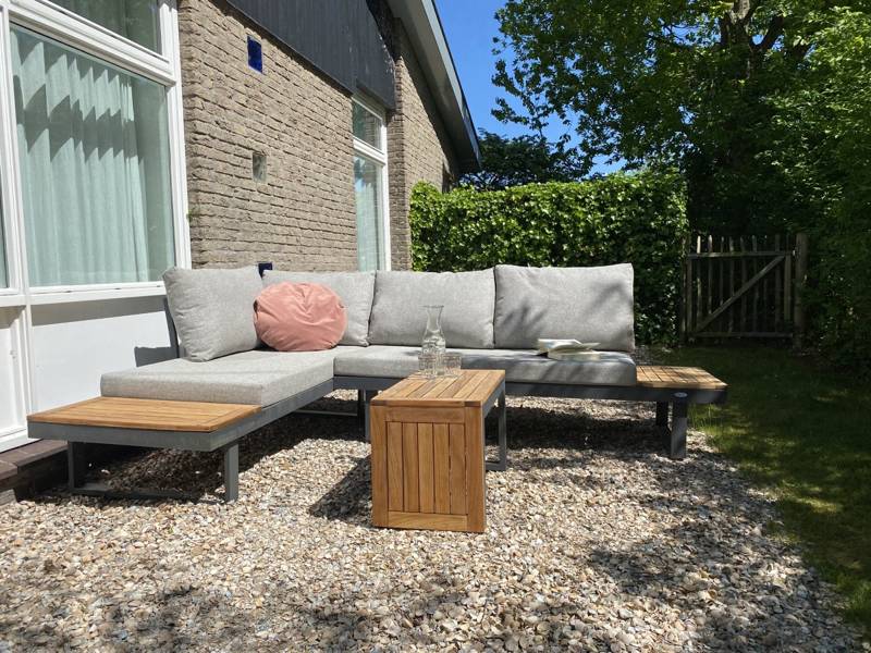 Via de woonkamer bereik je het terras, waar een gezellige picknicktafel en een comfortabele loungebank op het zuiden staan.